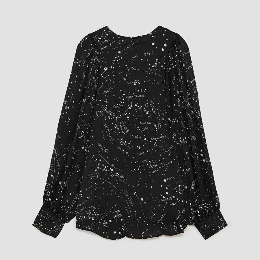 ZARA – Printed Blouse with Pearl Beads