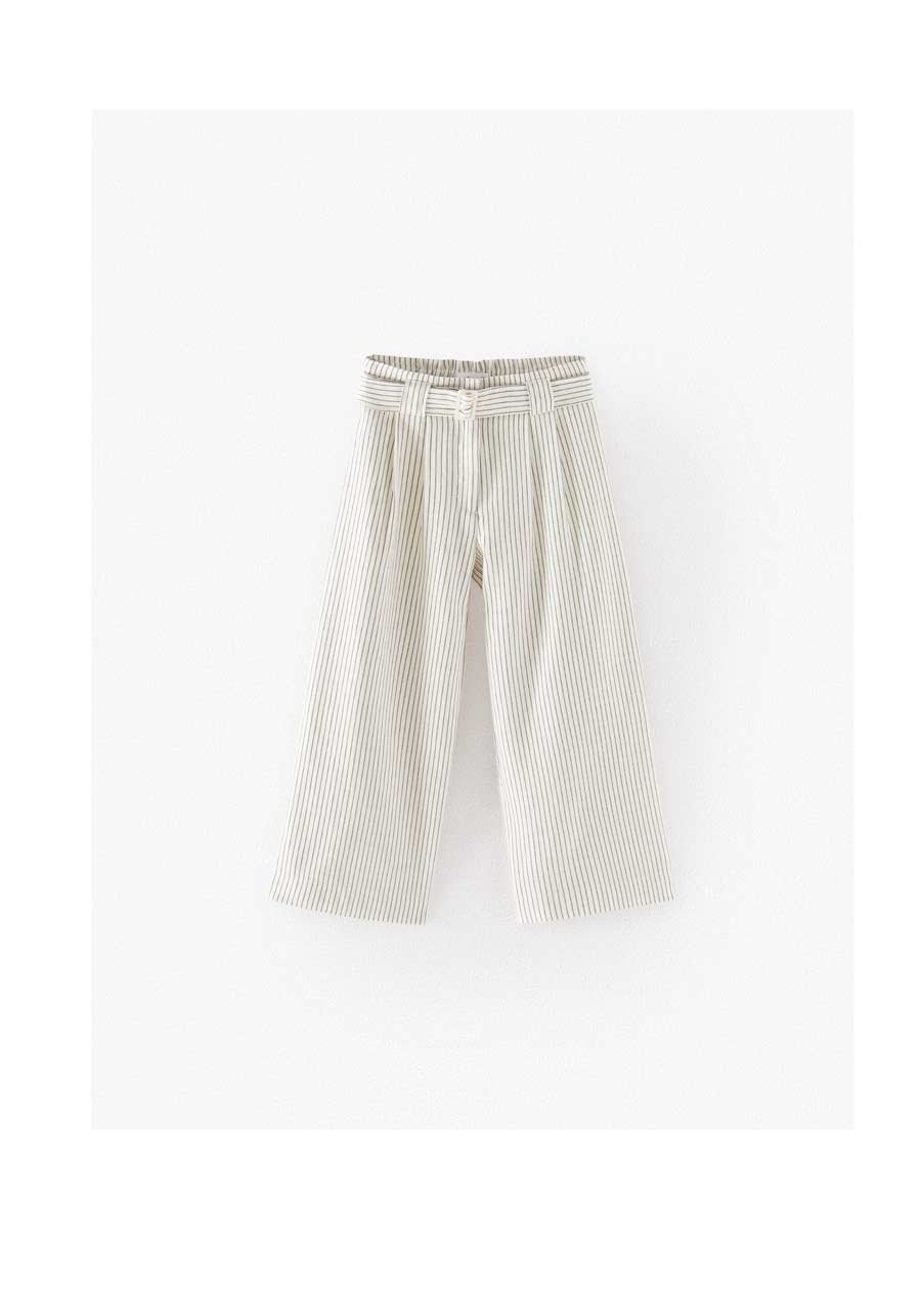 ZARA BUCKLE STRIPED TROUSERS Elastic waist pants on the back and front button closure. Apply adjustable belt with buckle detail. Finished in bell-bottom.
